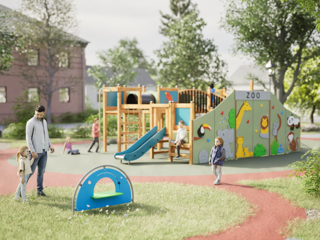 Little Shop is a colourful and engaging play panel designed for the youngest users of the playground. Made of durable, weather-resistant materials, it ensures safe and long-lasting fun. The semi-circular structure with a blue panel and green shelf creates a friendly space for role-playing, where children can play shopkeepers and customers. The central shop window and additional sensory elements encourage interaction, stimulating creativity and developing fine motor skills. Attractive colours and rounded, safe edges make the Little Shop perfect for any playground, supporting both themed play and the development of social skills.